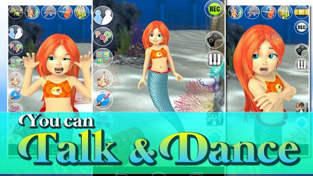 Description: Dive into the underwater world of the beautiful mermaid princess. Talk to the beautiful princess. She will answers with her cute voice and react to what you say or your touch. The app contains many cool games and a lot of extra content! Catch a glimpse of the princess’ everyday life and join her in her funny activities. Discover ancient treasures, meet her neighbors and fish friends, watch her cool acrobatic evolutions, etc. She will also get a brief visit from a lovely dolphin and dance with other mermaids.